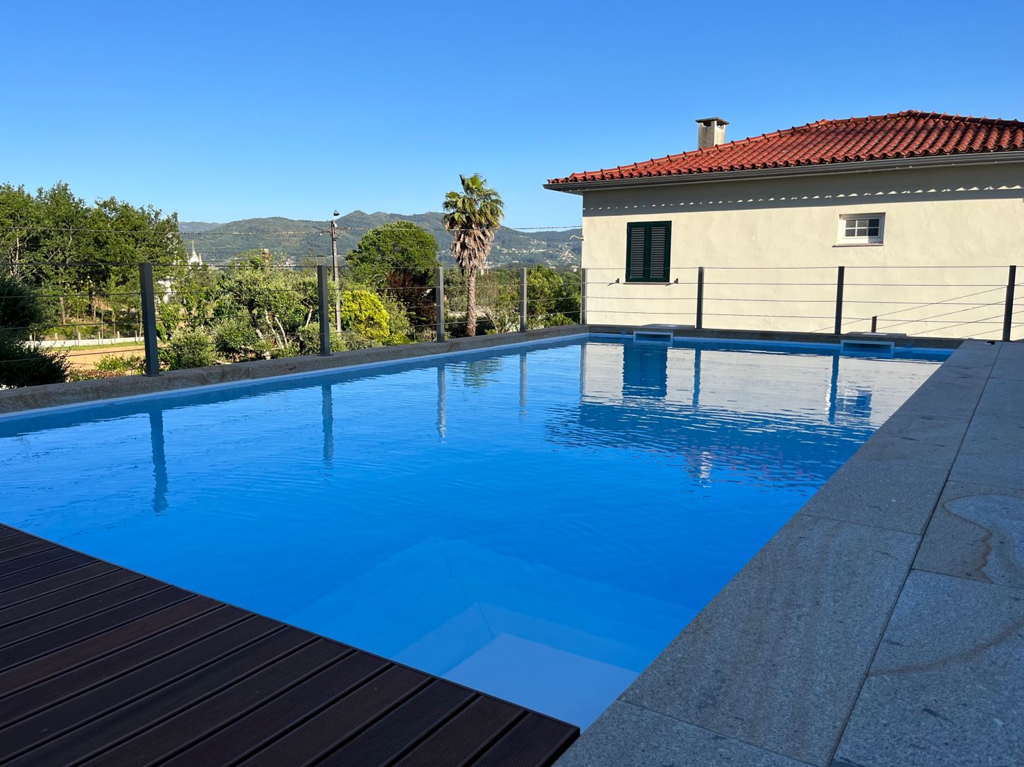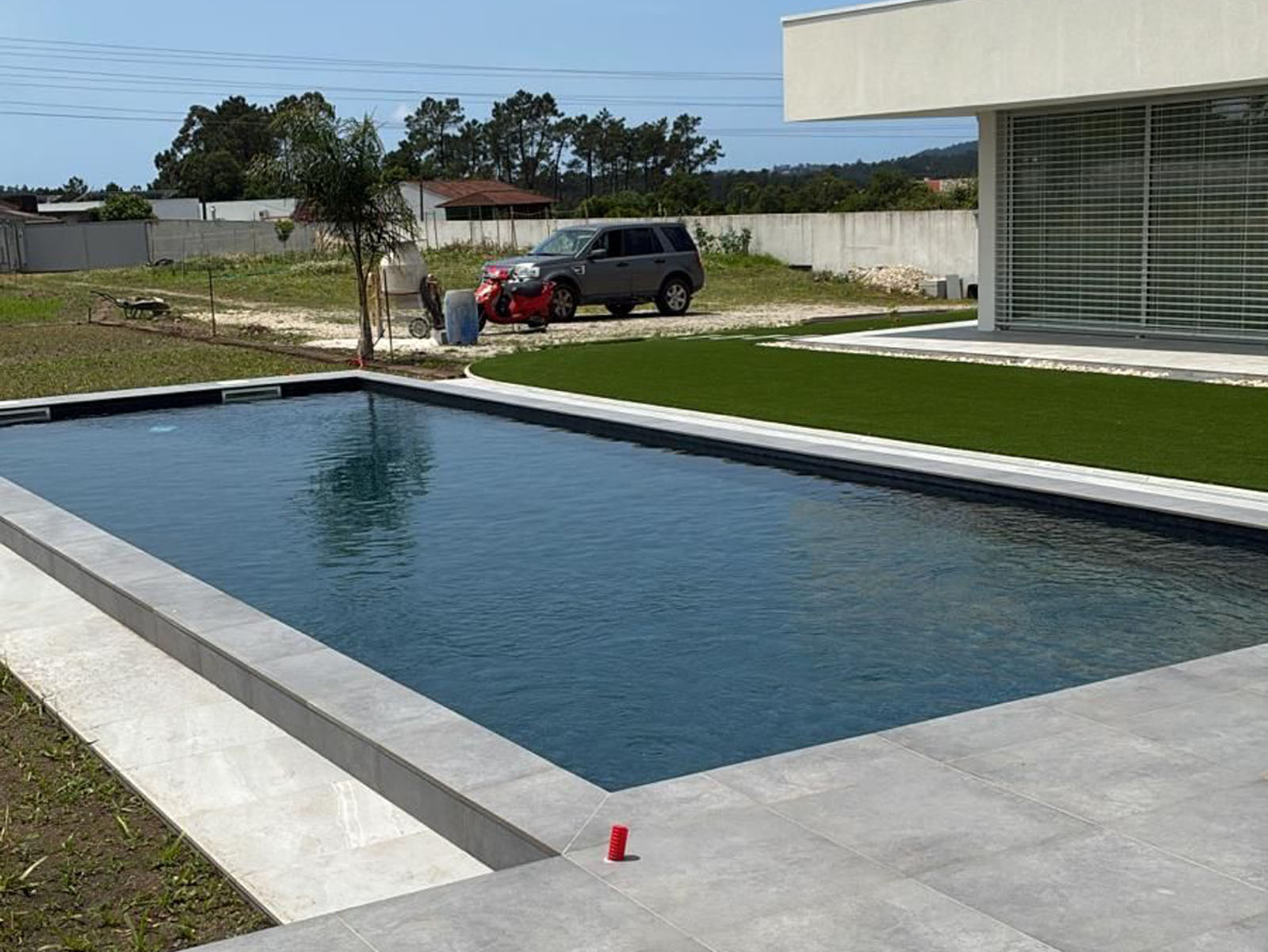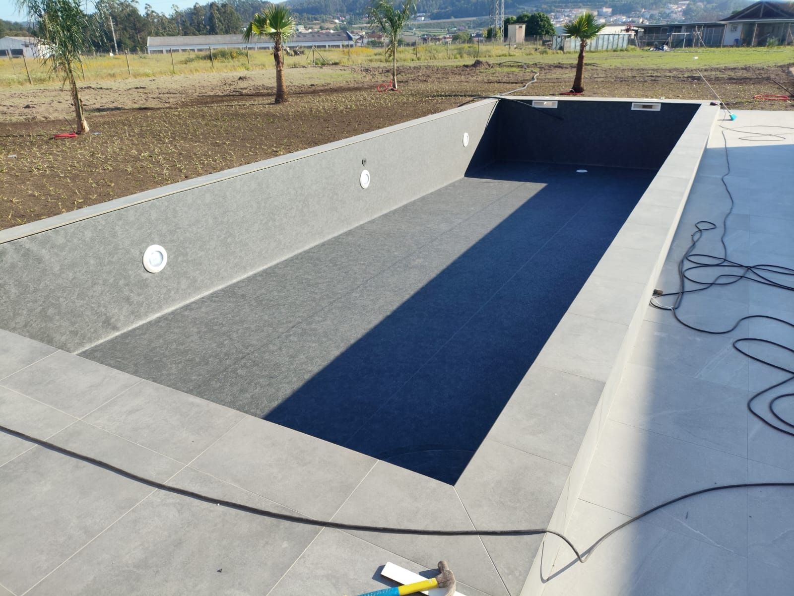 Materiais com elevada resistência química e mecânica, que prolongam a vida útil da piscina.